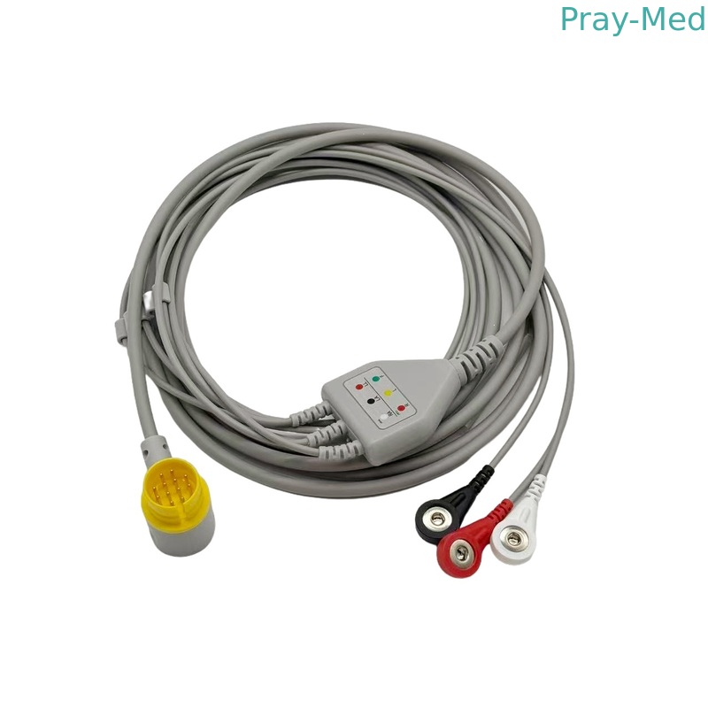 สาย ECG แบบชิ้นเดียว Lifegain CU-HD1 12Pin 3 Leads AHA Snap